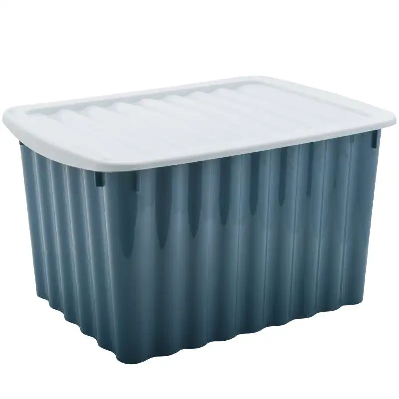 Cette boîte de rangement est utile pour ranger vos affaires et gagner de la place chez vous. Elle a pour dimensions 40 x 30 x 23 cm soit 28 L. Ce produit fait partie d'un assortiment de trois coloris (bleu, vert et violet). Ce modèle est de coloris bleu. Elle possède un couvercle ondulé noir.