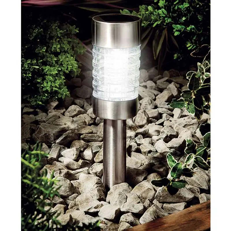 Borne solaire 1 LED à éclairage blanc sur pied à planter dans le jardin