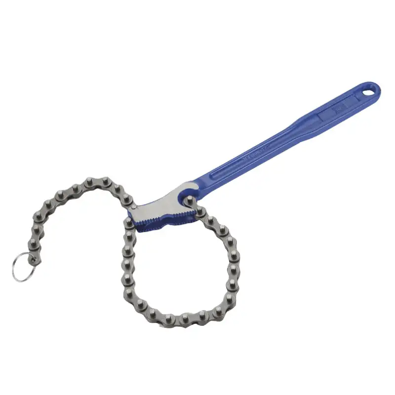 La poignée en acier forgé est conçue pour une prise en main confortable et sans effort. Fabriquées en acier forgé, la tête et la chaîne sont toutes deux durcies par trempagepour une résistance et une durabilité accrues. C'est la clé parfaite dans les secteurs de l'automobile et de l'irrigation.
