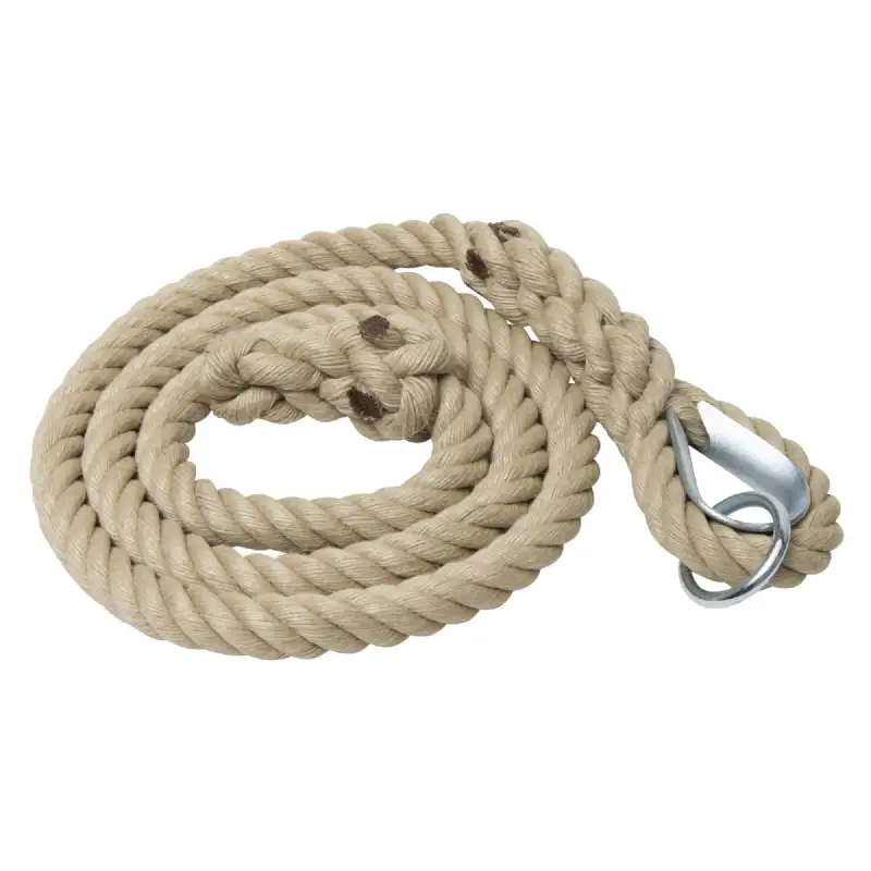 - Durabilité et résistance: Fabriquée en cordage polypropylène, cette corde résiste à l'humidité et au soleil. Son anneau de suspension en acier galvanisé assure une excellente durabilité
