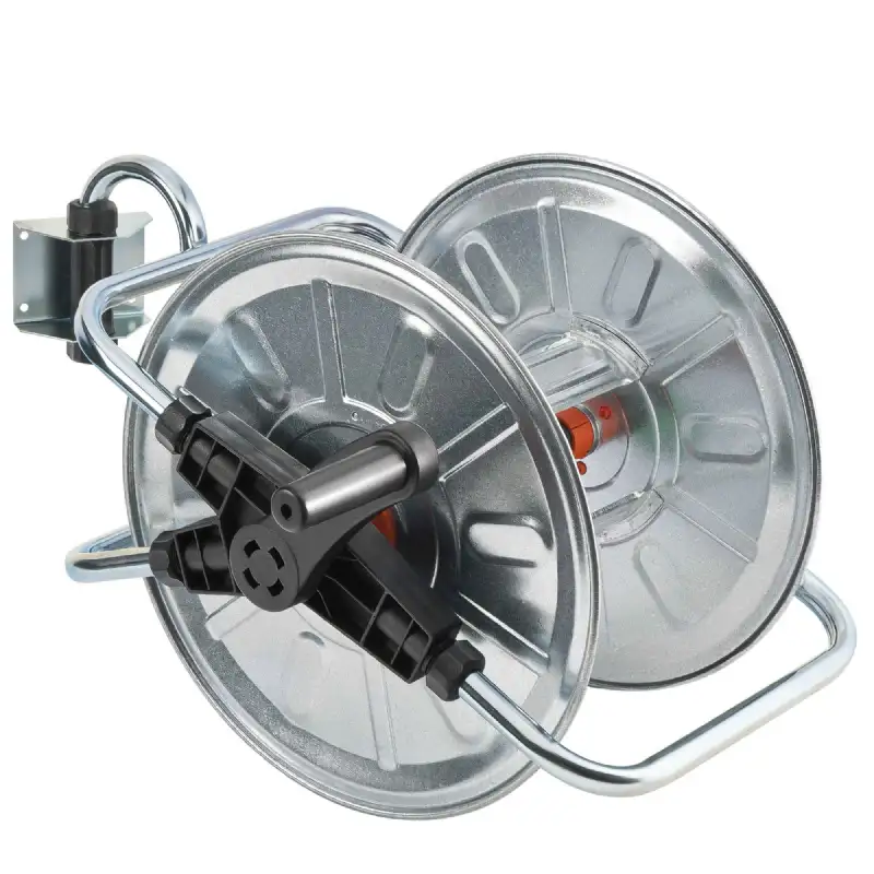 Dévidoir à fixer au mur en métal galvanisé ayant une capacité de 50 m de tuyau en 1/2".