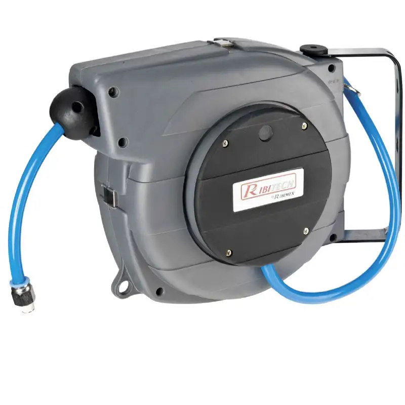 Fixation au mur. Axe pivotant de 180°. Déroulement par simple traction, avec blocage. Ré enroulement automatique, avec butée de blocage.Diamètre intérieur du tuyau 8mm.