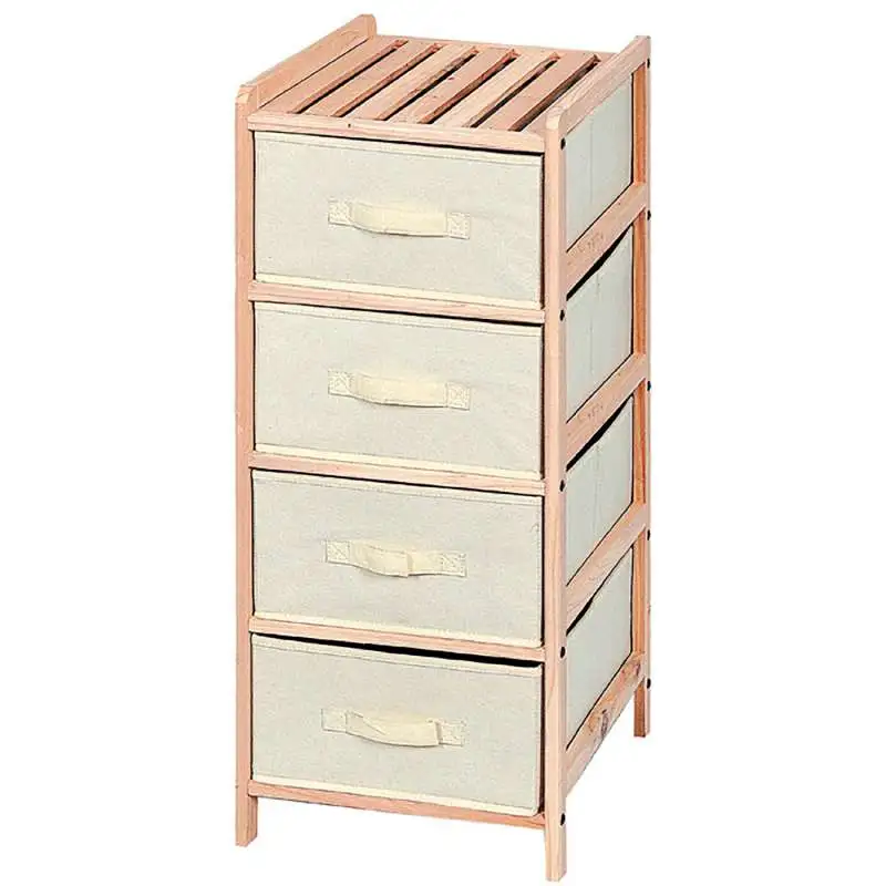 Meuble étagères bois 4 tiroirs tissu (86x34.5x36.5cm). Dimensions : 86 x 34.5 x 36.5 cm. Matériaux : bois et textile non tissé. Coloris : beige. Livrée avec éléments de montage