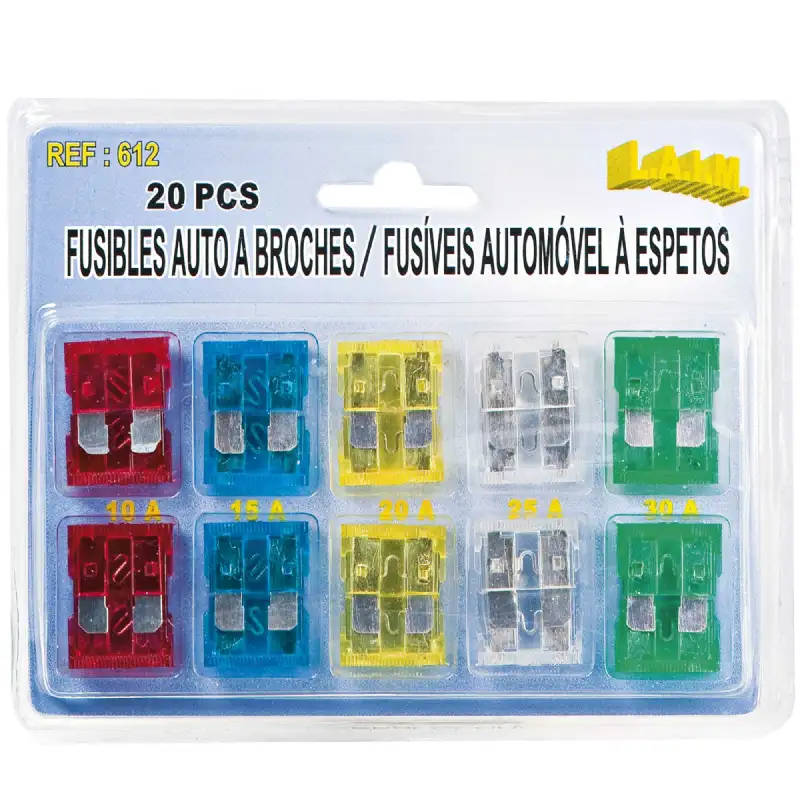 Assortiments de 20 fusibles à broches pour voitures.