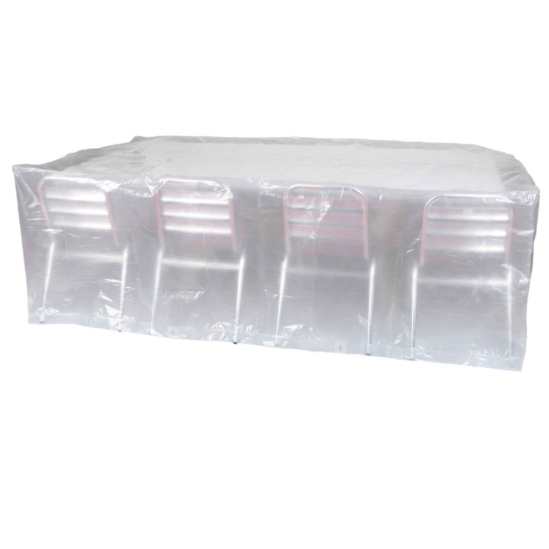 Housse ou bâche de protection de mobilier de jardin ou d'extérieur pour augmenter la durée de vie et conserver le bel aspect de vos accessoires de loisirs. Très haute résistance aux intempéries (3 fois plus résistante par rapport aux housses classiques). Protection souple et légère. 100% recyclable. 100% étanche à l'eau, à la poussière et aux U.V. Résiste aux changements de température et à de nombreux produits chimiques. Les œillets sont intégrés à la bâche par un procédé ultrasonique très résistant.