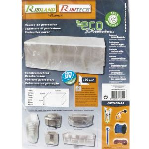 90g/m². Bâche d'aspect transparent. Dimensions 220 x 120 x 70 cm.