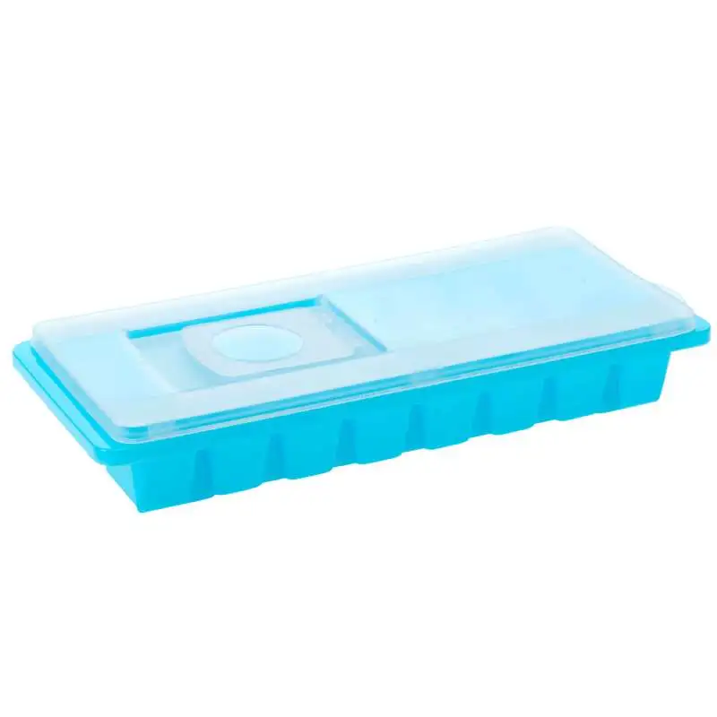 Moule à glaçon avec couvercle amovible. Matière : polypropylène. 16 cases. Languette de remplissage. Dimensions : 26 x 10 x4 cm. 4 couleurs différentes : bleu, rose, orange et vert. Couleur selon arrivage.