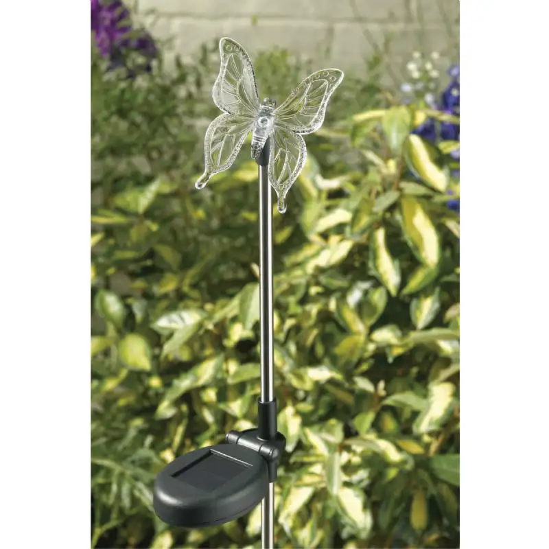 Cette décoration solaire lumineuse en forme de papillon ou libellule illuminera vos extérieurs de manière originale.