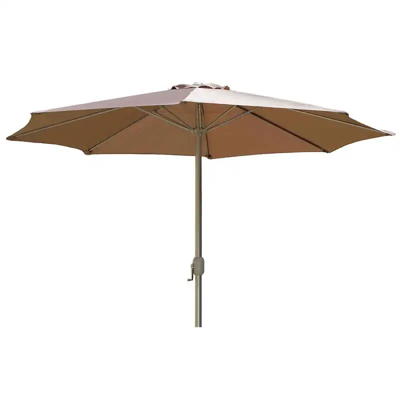 Parasol droit avec une toile polyester déperlante couleur taupe de fort grammage pour une bonne protection du soleil.
