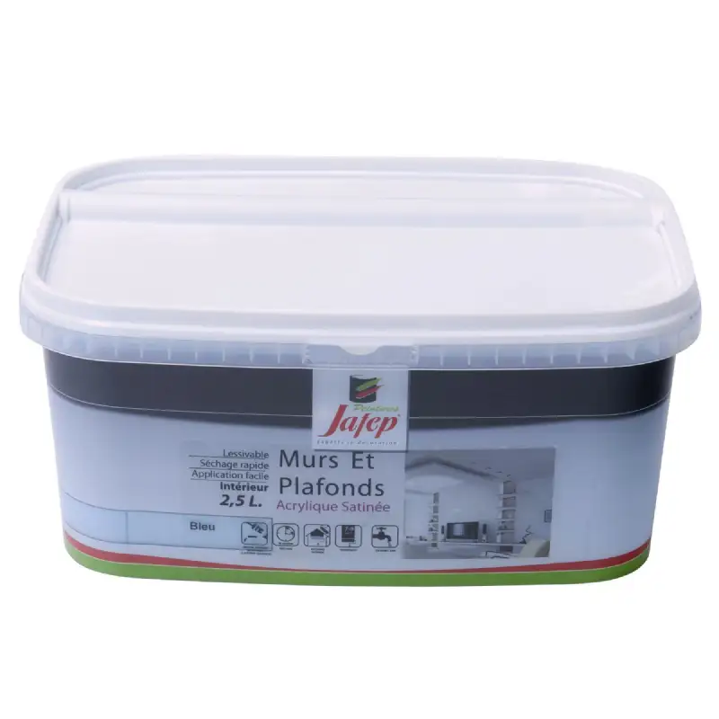 La gamme des peintures satinées Jafep pour intérieur (murs et plafonds) et extérieur est réputée pour sa qualité et ses caractéristiques qui la distingue de la concurrence. Nous vous proposons une gamme de peintures Jafep 2,5L, avec plusieurs coloris au choix. Pour contraster avec ce bleu, pourquoi ne pas essayer cette Peinture mur et plafond satinée rouge vif (2,5L) Jafep ?