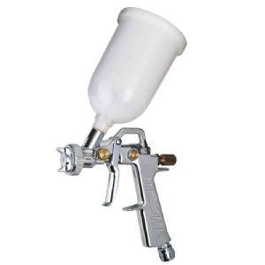 Pistolet à peinture pour retouche à jet réglable, avec godet.