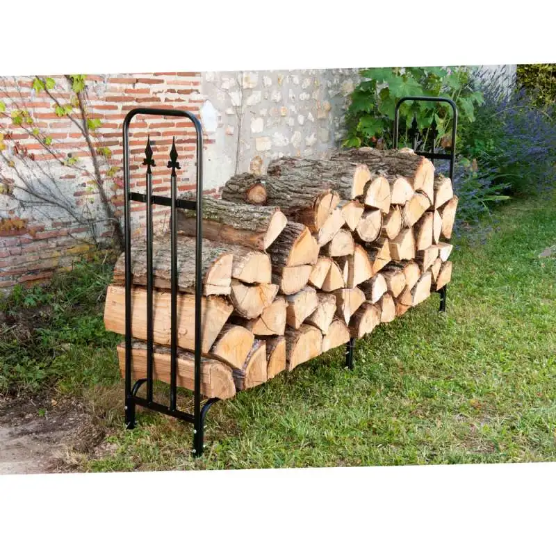 Ce range bûches en métal permet de stocker vos bûches à l'abri de l'humidité grâce à sa structure surélevé ce qui facilite le séchage du bois. Il a pour dimensions 200 x 116 x 36 cm et propose donc une grande quantité de stockage. Pratique et design, il possède une structure en acier anti-rouille afin de résister à l'extérieur. Montage facile et rapide, les tubes de ce range bûche ont pour diamètre 20 mm
