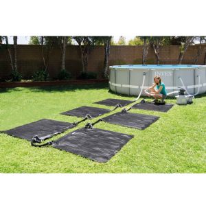 La chaleur obtenue est véhiculé par la filtration du bassin, tout ceci sans apport d'électricité. Ces réchauffeurs peuvent se coupler et s'adapter au volume de votre bassin. Simple et rapide cette installation de chauffage solaire INTEX est très économique et vous disposerez de votre piscine plus longtemps dans la saison.