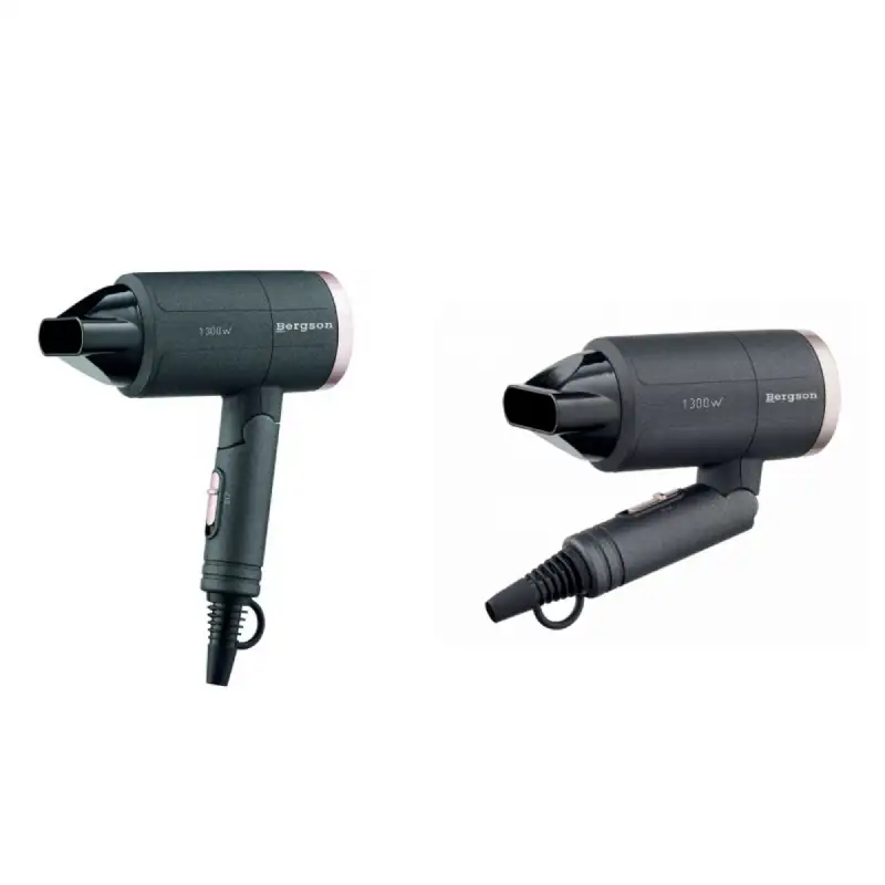 Sèche-cheveux pliable de voyage 2 Vitesses concentrateur poignée pliable de la marque Techwood. Idéal pour le voyage. Design et Elégant. Ne prend pas de place dans un sac ou une valise. Puissance : 1 100-1 300 W.