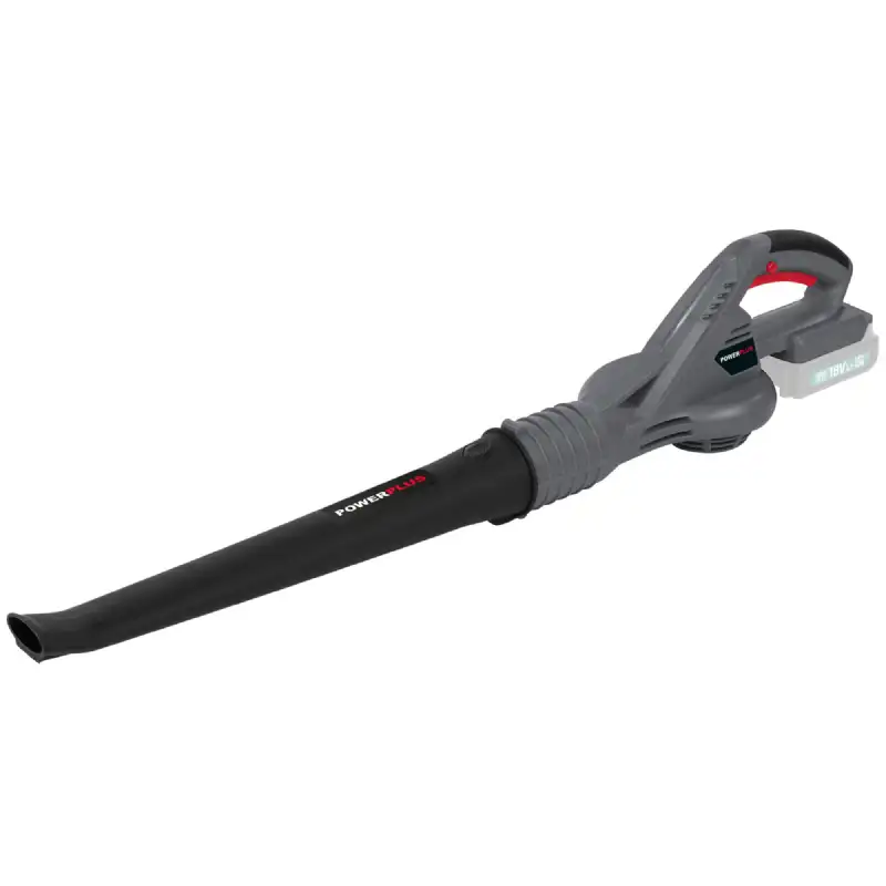 Souffleur à batterie One Fits All, Powerplus 18 volts. Volume d'air 9m³/min. Tube démontable très simplement par déclipsage pour un rangement facile.Grâce à sa légèreté et à sa poignée souple, ce souffleur s'utilise aisément d'une seule main. Batterie Slide-On de type Li-ion. Ce souffleur accepte les batteries 1,5 ou 3Ah de la gamme 18v One Fits All de Powerplus.