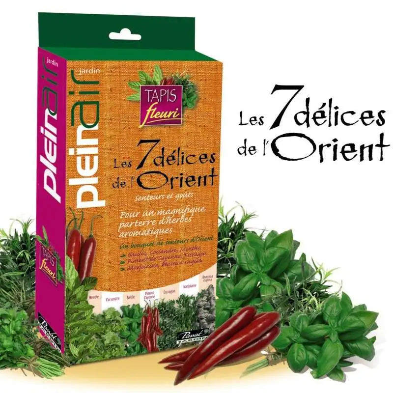 Boîte de 7 feuilles de 21 X 29,7 cm. Environ 1500 graines : Basilic, Coriandre, Menthe, Piments, Estragon, Marjolaine et Brassica Rugosa.