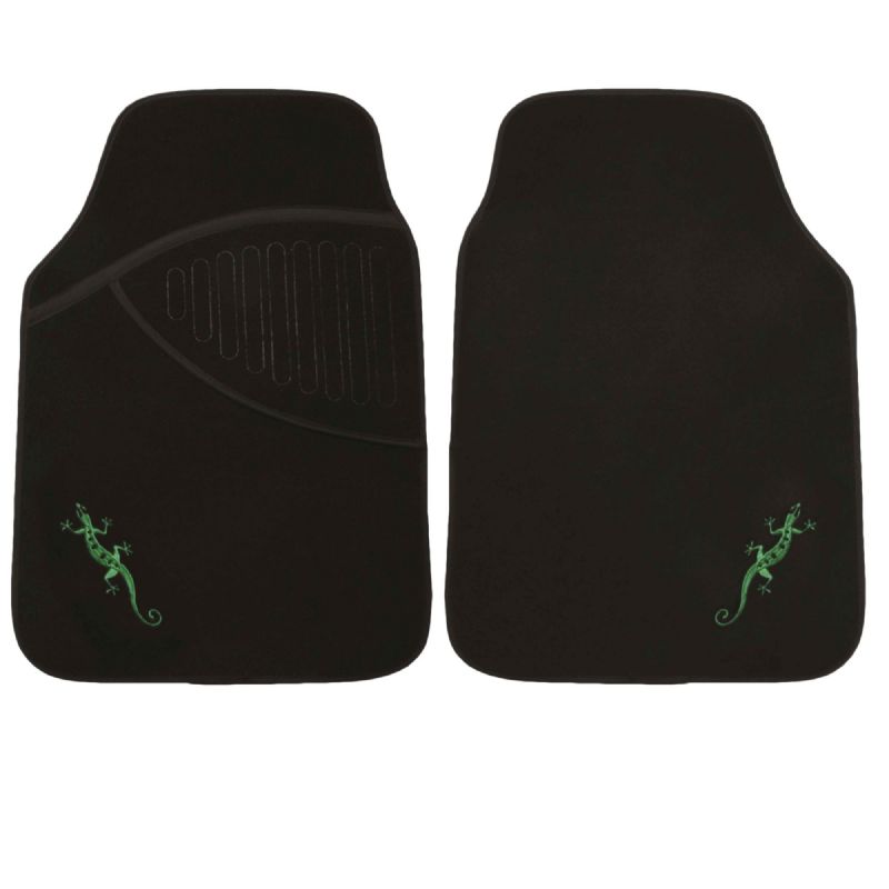 Set de 4 tapis de protection pour voiture en moquette. Le set est composé de 4 tapis de protection : 2 tapis pour l'avant du véhicule et deux tapis pour l'arrière. Les tapis sont décorés d'un lézard gecko. Les tapis sont en moquette, idéal pour absorber la poussière et saleté. Les tapis ne bougent pas une fois placés dans la voiture.