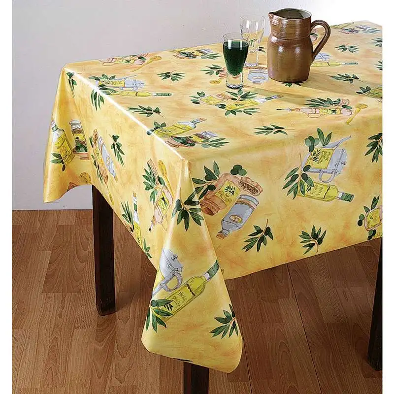 Nappe en toile cirée rectangulaire, existe aussi en nappe ronde de 150 cm de diamètre.